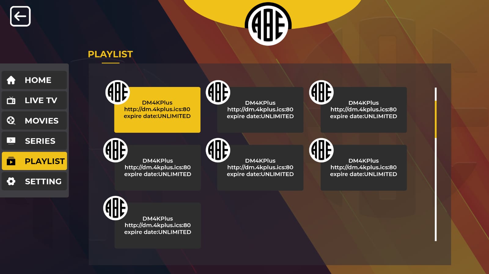 Abe Player is a General Media Player and it doesn't include any content or playlists.
